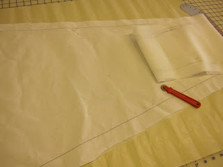 Vogue 8848 was made for a woven fabric, but was also perfect for the knit as long as it is stable like a double knit. I still kept the zip because the neck opening was a bit small. I also changed out the sleeves. The pattern has those half/high sleeves which don't look really good on me. I just used another sleeve from another Vogue pattern and layed it out over the V8848 pattern so as to keep the same size sleeve cap and just copied the lines from the different pattern to extend it longer.